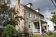 Penns Park Historic District is a national historic district located in Wrightstown Township, Bucks County, Pennsylvania. The district includes 34 contributing buildings in the village of Phillips Mill. The district largely developed in the 19th century and is characterized by 2 1/2-story, gable roofed residences in vernacular interpretations of a variety of popular architectural styles including Greek Revival, Gothic, and Queen Anne. A number of the residences have been converted to commercial purposes. Notable buildings include the Methodist church, Penns Park School, and Penns Park Tavern.[2]