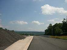 The Marshalls Creek Bypass was redesigned as a new project with a new park and ride at the Pocono Bazaar to the northeast of Marshalls Creek with an extended Oak Grove Drive, which would run around the back of the Bazaar and come to a new intersection with US 209 and a new bypass of the village of Marshalls Creek of US 209 only.[13] Construction on the park and ride began in 2009, marking the beginning of the third and final phase of the project.[14] Construction on the US 209 bypass was slated for Spring 2010, with a 2.5 year span of completion at the cost of $20 million (2009 USD).[15] The bypass opened on June 11, 2012, and PA 402's southern terminus became US 209 Bus. as US 209 was rerouted onto the new bypass.[16]