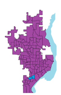 | Purple denotes a precinct won by Ardis, Blue by Butler. |