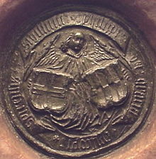 Seal of Bishop Philip I of Rosenberg; on the left the coat of arms of the Bishopric of Speyer, with a cross; on the right the von Rosenberg family coat of arms | |