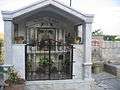 Roadside shrine showing the words "Falem O Mëri" meaning "Hail Mary" in Albanian