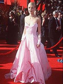 The Pink Ralph Lauren dress of Gwyneth Paltrow refers to the pink dress, designed by Ralph Lauren, which Gwyneth Paltrow wore to the 71st Academy Awards on 21 March 1999 at the Dorothy Chandler Pavilion in Los Angeles. The dress is cited by several sources as one of the greatest dresses in the history of the red carpet of the Oscars,[1][2] and the style was compared to that of the actress Grace Kelly.[3] The dress was widely copied after the event, and Paltrow was credited for bringing pink back into fashion.[4]
