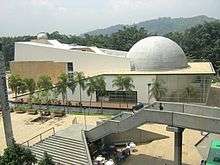 The Jesús Emilio Ramírez González Planetarium of Medellín (Spanish: Planetario Medellín de Jesús Emilio Ramírez González) is a planetarium located in Medellín, Colombia and established on October 10, 1984.[1] It was originally conceived by the Astronomical Society of the College of San José, led at that time by Brother Daniel (Julián González Patiño), a renowned scientist, astronomer, and botanist. The purpose is that the planetarium is a space for the promotion of scientific and technological culture of citizens and mentality that encourages scientific and technological creativity. The museum is surrounded by a public space known as the Park of Wishes, which was designed by Felipe Uribe de Bedout to coordinate with the planetarium.[2]