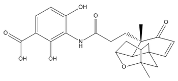 3-[[3-[(1R,3R,4R,5aR,9R,9aS)-1,4,5,8,9,9a-hexahydro-3,9-dimethyl-8-oxo-3H-1,4:3,5a-dimethano-2-benzoxepin-9-yl]-1-oxopropyl]amino]-2,4-dihydroxy-benzoic acid | |