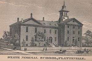 The university grew from the 1959 merger of two schools:Wisconsin State College, Platteville and Wisconsin Institute of Technology.[4] WSC-Platteville was founded in 1866 as Platteville Normal School, the first teacher preparation school in Wisconsin. It was renamed Platteville State Teachers College in 1926 and Wisconsin State College, Platteville in 1951. The Wisconsin Institute of Technology, founded in 1907 as the Wisconsin Mining Trade School, was founded to train technicians for the numerous mining operations around Platteville. It evolved into the first three-year program for mining engineers in the United States. It changed its name to the Wisconsin Institute of Technology in 1939. The schools combined became the Wisconsin State College and Institute of Technology. In 1966, along with Wisconsin's other state colleges, it was granted university status as Wisconsin State University-Platteville. It took its current name after the Wisconsin State University system merged with the University of Wisconsin in 1971.[4]