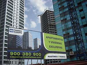 Plaza de Europa (Catalan: Plaça d'Europa) is a square in the District VII (Granvia l'Hospitalet) of L'Hospitalet de Llobregat (suburb of Barcelona, Catalonia in Spain). Located on the Granvia de l'Hospitalet avenue at the intersection with Carrer d'Amadeu Torner. It is part of L'Hospitalet's recent urban development, and one of its biggest squares at 33 ha, with a distinguishable skyline made up of high-rises, among the tallest structures in the city, some of which are designed by the renowned architect Toyo Ito. It is expected to become its economic centre, and will allow different parts of the city formerly severed by the Granvia to become interconnected. It is still not completed but already featuring most of its planned buildings and infrastructure. Part of Fira de Barcelona, near it stand the pavilons of rest of Fira de Barcelona and the shopping centre Gran Via 2.