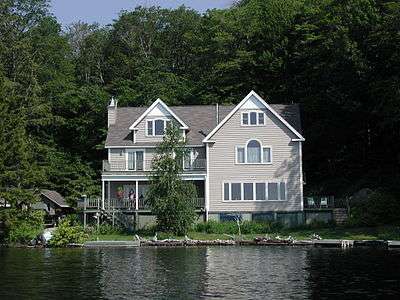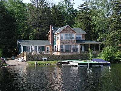 An example of a recently renovated camp on Pleasant Lake. This beautiful, large house was originally a small camp, and has been renovated to its current condition by building around the original camp.