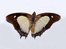 | Polyura hebe fallax. Mounted specimen from Java. Dorsal view | |