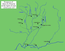 This account, however, is based on a confusion between Ponce de Minerva and Ponce de Cabrera.[40] There is some confusion even among modern historians between these two Ponces.[31][32][42] Derek Lomax notes that "the personalities, relationships and activities of these minor Catalan nobles are difficult to disentangle, but it is clear that they were extremely active in the politics of central Spain throughout the twelfth century, and that they built up their lordships primarily in the region of Salamanca and Valladolid."[43] The first modern historian to differentiate the two Ponces was the Marqués de Mondéjar (died 1708), who believed them to be closely related.[44]