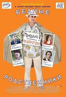 Bednye Rodstvenniki (Russian: Бедные родственники, Roots or Poor Relatives) is a 2005 comedy film, close in style to "The 12 chairs" and "The Small Golden Calf"; based on the novels by Ilya Ilf and Evgeniy Petrov.