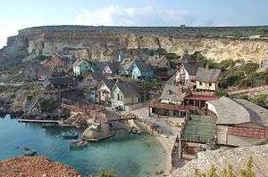 Popeye Village, also known as Sweethaven Village, is a group of rustic and ramshackle wooden buildings located at Anchor Bay in the north-west corner of the Mediterranean island of Malta, two miles from the village of Mellieħa.