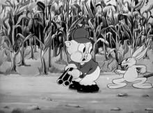 Porky's Hare Hunt is a 1938 animated short movie directed by Ben "Bugs" Hardaway and an uncredited Cal Dalton,[1] which starred Porky Pig as a hunter whose prey is an unnamed rabbit. The rabbit's hyperactive personality and laughing voice provided by Mel Blanc predated the 1940 Walter Lantz/Universal Pictures release Knock Knock which starred Andy Panda and introduced cartoon audiences to Woody Woodpecker which was created for the Lantz studio by Hardaway after his departure from the Leon Schlesinger/Warner Bros. studio.