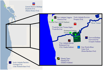 Port Adelaide and Norwood are located on opposite sides of Adelaide, with the north-western side of the city traditionally being associated with blue-collar workers and the eastern side of the city white-collar professionals. This economic split is reflected in house prices with Norwood properties in 2015 commanding an average $900,000 whereas Port Adelaide properties are around a third of that at $315,000.[1]