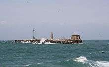 Porto Mediceo remained with the plan unchanged until 1853 when was built the Diga Rettilinea.[12] This breakwater, that was not connected to the coastline, had the intent to protect the Medicean Port from the waves coming from north. At the end of the 19th century the Diga Rettilinea was connected to the land and a new dock, called Darsena del Mandraccio was built near Fortezza Vecchia. A new port plan was approved in 1906 and regarded the construction of two breakwaters: the Diga della Meloria and the Diga del Marzocco.[13]