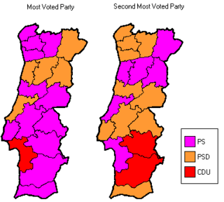 The Portuguese local election of 2005 took place on 9 October. The election consisted of three separate elections in the 308 Portuguese municipalities, the election for the Municipal Chambers, whose winner is elected mayor, another election for the Municipal Assembly and a last one for the lower-level Parish Assembly, whose winner is elected parish president. This last was held separately in the more than 4,000 parishes around the country.