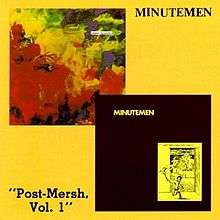Post-Mersh, Vol. 1 is a compilation album by influential punk rock/alternative trio The Minutemen. It contains both The Punch Line (1981) and What Makes a Man Start Fires? (1983) respectively. These two releases are considered the first two "full length" albums recorded by the band.