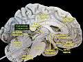 ![]() Mesal aspect of a brain sectioned in the median sagittal plane. (Posterior commissure labeled at upper right.) | |