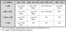 - Except as specified in Subparagraph (3)(d) of this definition, a FOOD that because of the interaction of its AW and PH values is designated as Product Assessment Required (PA) in Table A or B of this definition: