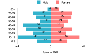 Figure 1. Population pyramid of village in 2002 — by age group and sex[1]