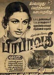 Prabhavathi is a 1942 Indian Tamil-language Hindu mythological film directed by T. R. Raghunath and Lena Chettiar. The film features Honnappa Bhagavathar, Sp. L. Dhanalakshmi, T. R. Rajakumari, M. S. Saroja, Nagercoil K. Mahadevan, D. Balasubramaniam, R. Balasubramaniam, N. S. Krishnan, T. A. Madhuram, T. R. Ramachandran, S. V. Sahasranamam, E. R. Sahadevan, Kulathu Mani, T. V. Namasivayam, ‘Pulimoottai' Ramasami, Velayutham, M. Lakshmanan, P. A. Periyanayaki, P. A. Rajamani, A. R. Sakunthala, K. R. Chellam, ‘Lux Beauty' R. Padma, T. S. Krishnaveni and G. Rathinam.[1]