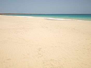 Praia de Santa Mónica (Portuguese meaning "beach of Saint Monica") is a sandy beach in the southwestern part of the island of Boa Vista in Cape Verde.[1] Its total length is approximately 18 km and it extends from the island's westernmost point (Varandinha) to the island's southernmost point.[2] It was once called Porto Português, the first landing of the Portuguese on the island. The nearest village is Povoação Velha, 5 km to the north. The beach is an important for laying turtle eggs, which considers itself a protected area commonly known as the Morro de Areia Nature Reserve (Reserva Natural de Morro de Areia) which covers 2,585 hectares and bounds up to around 300 meters within the shoreline as it is being a marine reserve, the reserve is named after the nearby hill.[2] Nearby beaches is Curralinho and Varandinha.