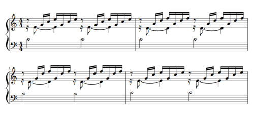 The prelude is 35 bars long and consists mostly of broken chords. Below are the first four bars of the prelude: