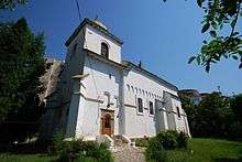 A walled and fortified church, it is located near the Golia Monastery. Based on the oldest documentary mention, found on an icon, it dates to 1645, and the architecture is characteristic of Vasile Lupu's reign.[1] Tradition holds that the ktitor was a Patriarch Nichifor, who had come from the Orient and settled in Iași; however, no document or inscription confirms this. The church was associated with two guilds: pastry makers and bragă sellers.[2] During the 18th century, the spire supports were repaired, and further renovation occurred the following century. Nevertheless, it was in ruins by 1902, when a thorough repair took place. The church was affected by the 1977 Vrancea earthquake, and restored in 1982-1983.[1] In 1992, the church was given over to the local Greek students' association and served by priests who knew Greek; the students carried out repairs three years later.[2] In 2006, with the number of Greek students much reduced, the church was made a chapel of the Metropolitan Cathedral. In 2010, it became a parish church.[1]