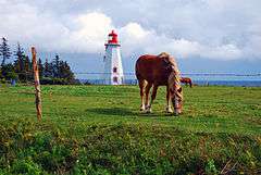 The climate of the island is considered to be moderate and strongly influenced by the surrounding seas.[8][9] As such, it is milder than inland locations owing to the warm waters from the Gulf of St. Lawrence.[10] The climate is characterized by changeable weather throughout the year; it has some of the most variable day to day weather in Canada in which specific weather conditions seldom last for long.[9]