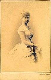 In 1881, Prince Alexander of Battenberg, who had been selected as sovereign Prince of Bulgaria since 1879, visited the Prussian court at the behest of Viktoria's mother.[1] As her mother and grandmother recommended Alexander (or 'Sandro') as a possible match, Viktoria quickly caught their enthusiasm and fell in love with him. Sandro, like his brothers, was considered exceedingly attractive, as he was lean and dashing.[2] Viktoria on the other hand was not a pretty girl, being described by one as "a kind of wild, Scandinavian woman, with much of her mother's impetuosity and a streak of her brother Willy's eccentricity".[3]