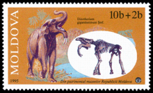 Dinotherium gigantissimum Ştef. The skeleton was found in 1966 near the village Pripiceni. The first description of this animal was made by the scientist Grigorie Ştefănescu (1836-1911).