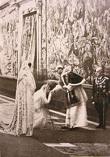 Le privilège du blanc (Italian: Il privilegio del bianco) is a French term meaning "The privilege of the white" used for a Catholic tradition whereby certain designated Catholic queens and princesses are permitted to wear a white dress and white veil during an audience with the Pope.[1]