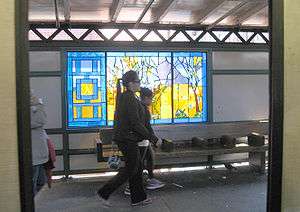 Both station houses have heaters. The 2006 artwork here is called Bronx, Four Seasons by Urkrainian artist Marina Tsersarskaya. It consists of stained glass panels on the platform windscreens and station houses depicting images related the four seasons of meteorology.