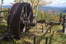 Prospect Mountain originally had to use an incline railway car to access the house at the top where people could dance and eat.[3] Construction on the railway began in January 1895 and cost $120,000 total. Construction was finished six months later, with the railway opening on June 15, 1895.[3] After failing financially, the railway system ceased operation in 1903.[4] The area was bought and soon donated to the State of New York. The nearby hiking trail that heads up towards the mountaintop is part of the old railway.[5]