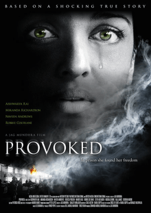 Provoked is a 2006 British biographical drama film, directed by Jag Mundhra. It stars Aishwarya Rai, Naveen Andrews, Miranda Richardson, Robbie Coltrane, Nandita Das and Steve McFadden. The film is loosely based on the true story of Kiranjit Ahluwalia, who killed her abusive husband.