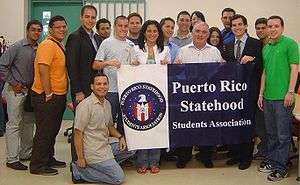 The PRSSA then began an inscription campaign for the November 2008 Puerto Rican general elections during the summer of 2008.[12] On August 11, 2008, the PRSSA held an Absentee Vote Inscription Party in Shannan’s Pub of Guaynabo, Puerto Rico, which featured PRSSA founders and NPP candidates Luis Fortuño and Pedro Pierluisi.[13] The Association then held an exhibition during the 2008 New Progressive Party Convention in the Condado Plaza Hotel of San Juan, Puerto Rico. This was followed by a PRSSA-led student registration drive in 22 colleges and universities throughout Puerto Rico.[14] The Puerto Rico State Elections Commission reported in September 2008 that over 200,000 students registered to vote for the first time, a result of the efforts by the PRSSA and other pro-statehood organizations.