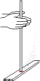The hand drill is a similar tool, but uses a longer, thinner spindle; and instead of a bearing block and bow combination, the downward pressure and spinning is achieved by rubbing the hands together around the spindle. As the hands move downward to the base, where the drill is pinched and the hands are brought quickly to the top one at a time. This can be made unnecessary by cutting a nock at the top of the drill, tying a cord through this, and then putting your thumbs through loops in the cord. However, skilled operators can either maintain pressure with their hands almost stationary vertically; or, in a movement comparable to floating, can "float" their hands back to the top of the drill. There is a more limited choice of materials to use with this method, needing much softer materials, such as mullein, yucca, cattail, and root wood.