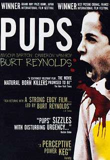 Pups is a 1999 American independent crime drama film written and directed by Ash, and stars Mischa Barton, Burt Reynolds and Cameron Van Hoy. The film centres on two young adolescents that embark on a bank robbery on their way to school. The film premiered at the Los Angeles Independent Film Festival on 18 April 1999. The film, although well received critically received a limited release that has been attributed as sensitivity to the Columbine High School massacre that occurred two days after the premiere.[1]