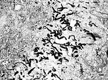 Pythiosis is a rare and deadly tropical disease caused by the oomycete Pythium insidiosum. Long regarded as being caused by a fungus, the causative agent was not discovered until 1987. It occurs most commonly in horses, dogs, and humans, with isolated cases in other large mammals.[1] The disease is contracted after exposure to stagnant fresh water such as swamps, ponds, lakes, and rice paddies. P. insidiosum is different from other members of the genus in that human and horse hair, skin, and decaying animal and plant tissue are chemoattractants for its zoospores.[2] Additionally, it is the only member in the genus known to infect mammals, while other members are pathogenic to plants and are responsible for some well-known diseases in plants.