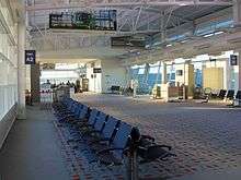The terminal features the full-service Air Host Restaurant. There is also a full-service bar, Paradies Gift Shop, shoe shine service, and post office boxes and a mail drop. An art gallery, featuring local and regional modern and contemporary art, is located near the security check point. There is also a visitor information center near baggage claim to provide passengers local tourism information and directions. Free wireless internet (Wi-Fi) is available throughout the airport.[11]