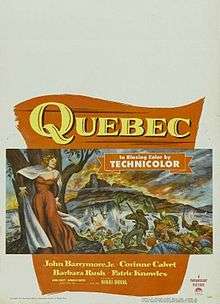 Quebec is a 1951 American historical drama film directed by George Templeton and written by Alan Le May. Set in 1837, it stars John Drew Barrymore in a fictional account of the Patriotes Rebellion. The popular uprising sought to make Lower Canada, now Quebec, a republic independent from the British Empire, and happened around the same time as a similar revolt in Upper Canada, now Ontario.