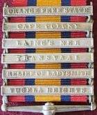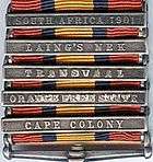 - ↑ G.R. Duxbury (June 1972). "Queen's South Africa Medal with 10 Bars". Military History Journal. The South African Military History Society. 2 (3). (Retrieved 2015-03-13)