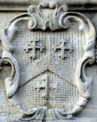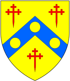 | Crossing:(?) A chevron between three crosses crosslet (unknown). Apparently Crossing of Exeter, given similarly by Vivian as Or, on a chevron azure between three crosses crosslet fitchée gules as many bezants[35] which family was heir to the Dodderidge family of Barnstaple and of Bremridge, South Molton. Hugh Crossing was Mayor of Exeter in the 17th century[36] and his eldest son Francis Crossing (c.1598-1638) was Member of Parliament for Mitchell in 1626 and for Camelford in 1628.[37] | ||||