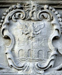 | Sculpted escutcheon | Arms with tinctures | Full view | ||