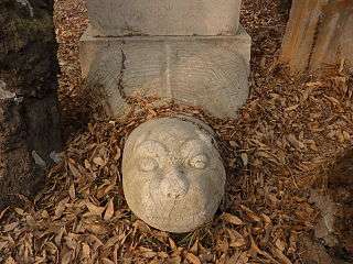 The artifacts of the historical sites at Qufu suffered extensive damage during the Cultural Revolution when about 200 staff members and students of Beijing Normal University led by Tan Houlan (谭厚兰, 1937–1982), one of the five most powerful student leaders of the Cultural Revolution, came to Qufu and destroyed more than 6000 artefacts in November 1966.[29][30][31]