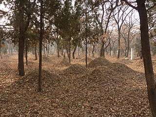 The Cemetery of Confucius (孔林; pinyin: Kǒng Lín) lies to the north of the town of Qufu. The oldest graves found in this location date back to the Zhou Dynasty. The original tomb erected here in memory of Confucius on the bank of the Sishui River had the shape of an axe. In addition, it had a brick platform for sacrifices. The present-day tomb is a cone-shaped hill. Tombs for the descendants of Confucius and additional stela to commemorate him were soon added around Confucius' tomb.