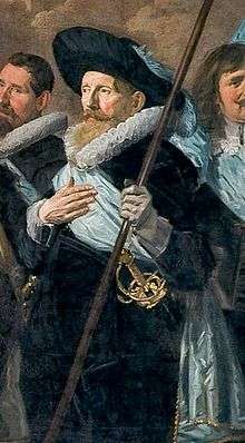 Quirijn Damast was the son of Jan Damast Crijnsz from Courtrai. He became a damask weaver like his father, who had come to Haarlem about the time he was born in 1580. Quirijn married Willimijnken Jansdr van der Eynde in 1603.[1] He became a Haarlem councilman in 1627 and was mayor in 1642 and 1674. He was governor of the St. Elisabeth Gasthuis, Haarlem in 1626. In 1633 he became governor of the old men's almshouse and in 1644 he became warden of the orphans. Hals painted him 3rd from right in The Officers of the St George Militia Company in 1639. His daughter's children inherited his estate and the list of linen items in the inventory was quite impressive and was published in 1910.[2]