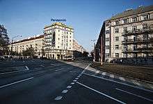 In addition to the streets mentioned below, the intersection is crossed by tram lines north-south, trolleybus lines east-west, and bus routes in all directions.