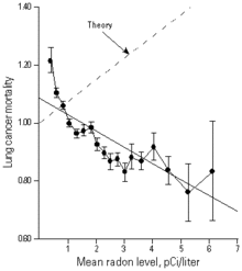 - ↑ Cohen BL (1990). "A test of the linear-no threshold theory of radiation carcinogenesis". Environ. Res. 53 (2): 193–220. Bibcode:1990ER.....53..193C. doi:10.1016/S0013-9351(05)80119-7. PMID 2253600.