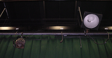 Elements of the set which are relatively flat or light can be flown in on battens.