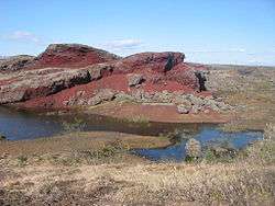 The Rauðhólar ("red hills") are remnants of a cluster of pseudocraters in Elliðaárhraun lava fields on the south-eastern outskirts of Reykjavík, Iceland. The Rauðhólar pseudocraters are part of Reykjavík's nature reserve of Heiðmörk.
